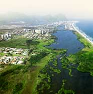 ginásticas. A Lagoa de Marapendi banha o Parque Zoobotânico, no Recreio.