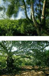 cactus, filodendros, rabos-de-arara, figueira-brava, ipê-branco (ou pau-de-tamanco,